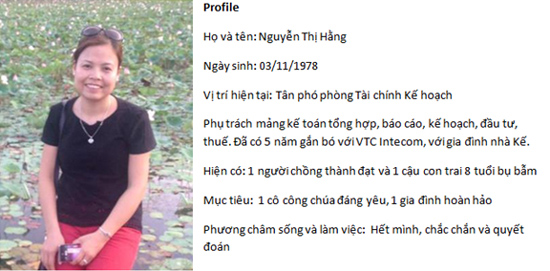 5 năm làm việc tại Intecom là quãng thời gian chị cùng Phòng TCKH đón tiếp không biết bao nhiêu là đoàn thanh tra, kiểm tra các cấp, từ cấp Tổng Công ty đến các đoàn “khó tính” như kiểm toán nhà nước, cục thuế... Cũng nhờ đó mà chị đúc rút được cho mình nhiều kinh nghiệm quý giá trên con đường sự nghiệp.