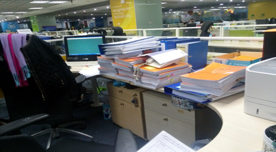 Trong khi anh Đức Hùng theo học đại học Bôn ba thì chị Hằng Nguyễn lại lấy góc làm việc của mình để cống hiến tuổi xuân xanh. Những chồng hồ sơ, chứng từ cao ngút, chị suốt ngày cắm đầu vào số sách. Chị phải kiểm soát tất cả các bút toán hạch toán từ các kế toán phần hành đến các báo cáo tài chính.