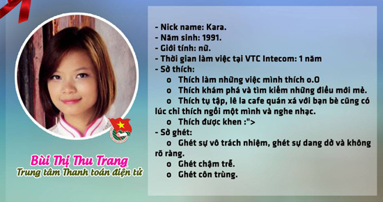Trang Kara, nhân viên truyền thông TT TTĐT, Ủy viên BCH Đoàn VTC Intecom khóa III.
