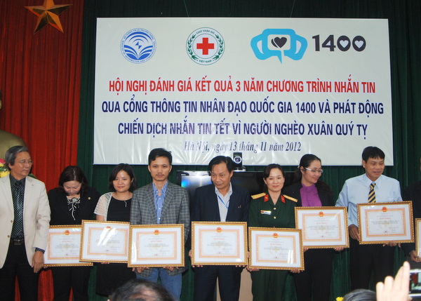 Chiều 13/11/2012 tại trụ sở Trung ương Hội chữ thập đỏ Việt Nam, số 82 Nguyễn Du – Hà Nội. Trung ương Hội chữ thập đỏ Việt Nam đã tổ chức tổng kết 3 năm (10/2010 - 10/2012) thực hiện chương trình nhắn tin qua cổng thông tin nhân đạo quốc gia 1400.
