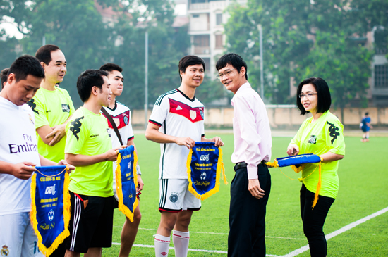 12 đội bóng tề tựu đông đủ về sân bóng đá ĐH Bách khoa Hà Nội để dự lễ khai mạc giải bóng đá mini truyền thống Tổng Công ty VTC lần thứ IX.