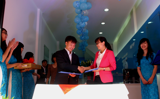 Tại TP HCM, anh Nguyễn Thanh Hưng - PGĐ Công ty đã cùng chị Nguyễn Trúc Quỳnh - Phó Trưởng bộ phận VP TP HCM cắt băng khai trương.
