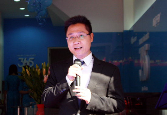 Anh Trần Quang Việt - Giám đốc TT TTĐT phát biểu cảm ơn và khẳng định sự quyết tâm của Thanh toán cước 365 khi tham gia lĩnh vực phân phối thẻ.