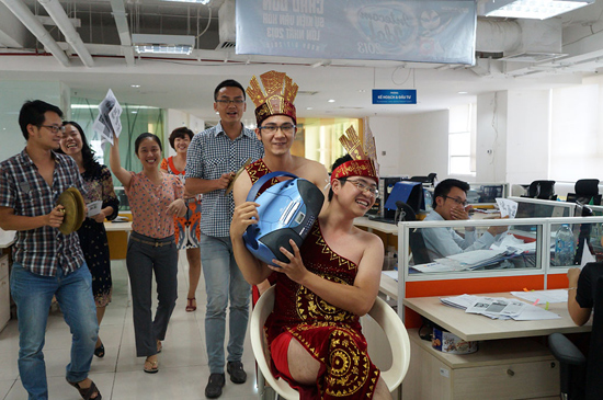 Đoàn phát báo không ngần ngại xông vào tận phòng của Anh Lương, phòng họp của anh Đạt hay phòng họp của anh Hà… Đội quân không ngần ngại khua chiêng gõ mõ xuống tận nhà ăn VTC Life và tầng 1 GM của VTC Game, đi đâu tiếng chiêng và tiếng hò reo vang dội đến đấy, bất chấp sự ngăn cản của các anh quản lý tòa nhà.