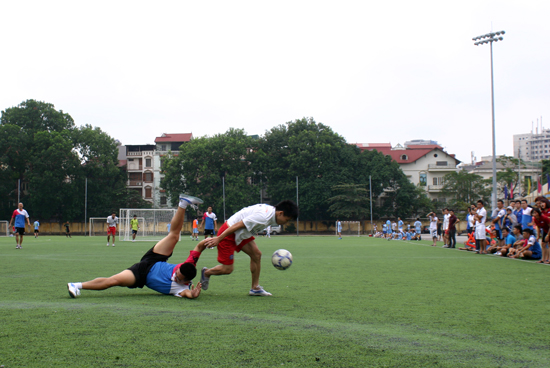 Trận Chung kết đã thu hút đông đảo cổ động viên gồm cả trẻ em đến với sân Bách Khoa. Chị Trần Thị Hoàn - Ủy viên Ban Thường vụ Công đoàn viên chức Việt Nam đã đến dự.